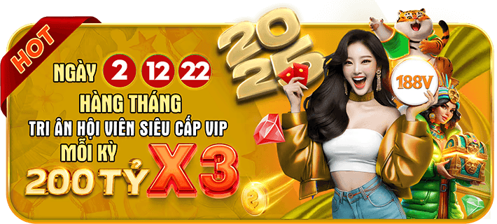 Nhà cái 188v5 .com tặng thưởng hội viên phần thưởng tiền mặt ngẫu nhiên vào các ngày 2, 12, 22 mỗi tháng. Với tổng giá trị giải thưởng lên tới 200 tỷ VND mỗi kỳ. Đăng nhập sẽ nhận được.